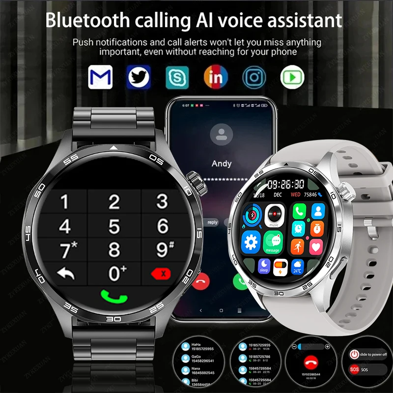 ساعة ذكية فاخرة NFC + مساعد ذكي AI بشاشة AMOLED